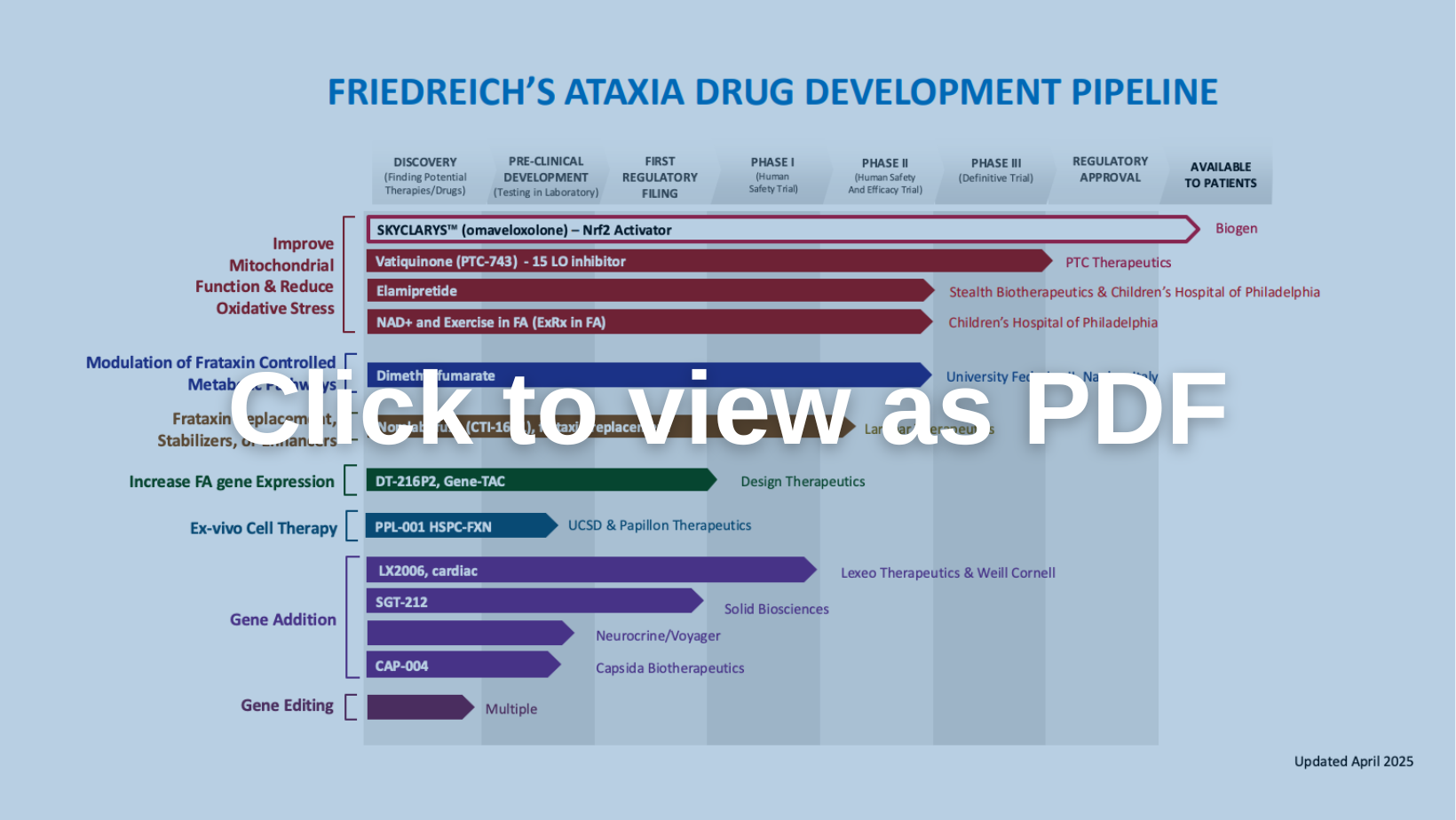 This information is publicly available and reshared here for informational purposes only. It is not medical advice. FARA does not endorse, control, or govern the research pipeline programs.