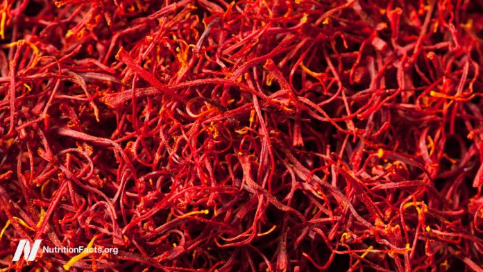 Suspecting the active ingredient might be crocin, the pigment in saffron that accounts for its crimson color, as shown here and at 0:59 in my video Friday Favorites: Benefits of Cumin and Saffron for Weight Loss, researchers also tried giving people just the purified pigment.